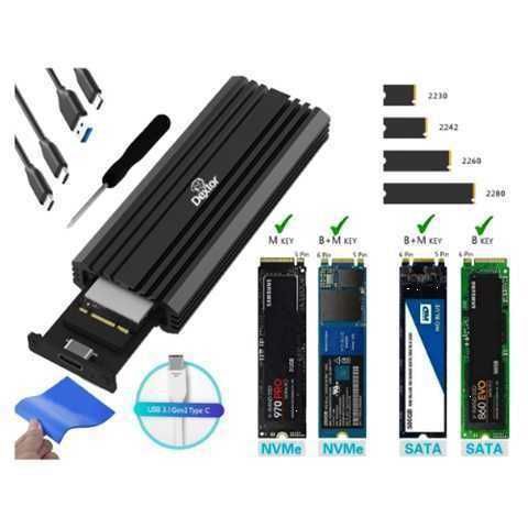 La carcasa Dextor para disco sólido SSD es perfecta para tus necesidades de almacenamiento. Fabricada en aluminio, asegura una óptima disipación del calor y es compatible con SSD M.2 NGFF M Key, tanto SATA como NVMe. Soporta tamaños de M.2 SSD 2230, 2242, 2260 y 2280, con una capacidad máxima de hasta 2TB.