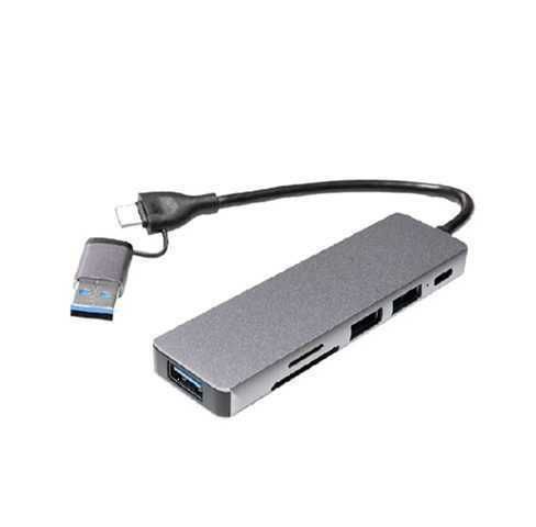 Conecte múltiples dispositivos fácilmente con el HUB 5 en 1 USB 3.0 y Tipo C. Este práctico accesorio cuenta con 3 puertos USB, permitiéndole conectar varios dispositivos al mismo tiempo. Además, incluye un lector de tarjetas SD/TF para la transferencia rápida de datos.
