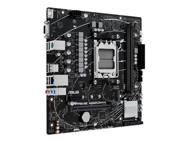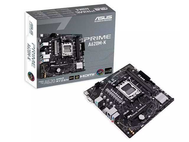 La placa base ASUS PRIME A620M-K es perfecta para procesadores AMD Ryzen™ de la serie 7000, utilizando el socket AM5. Con un chipset AMD A620, soporta hasta 96 GB de memoria DDR5 en 2 ranuras DIMM, alcanzando velocidades de hasta 7200 MHz.
