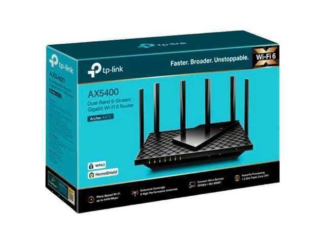 El Router TP-Link Archer AX73 es un dispositivo de alto rendimiento que ofrece velocidades Wi-Fi de hasta 5400 Mbps, ideal para streaming en 8K, navegación web y descargas simultáneas. Con tecnología Wi-Fi 6, su arquitectura 4T4R y soporte HT160 en la banda de 5 GHz permiten alcanzar velocidades de hasta 4.8 Gbps.